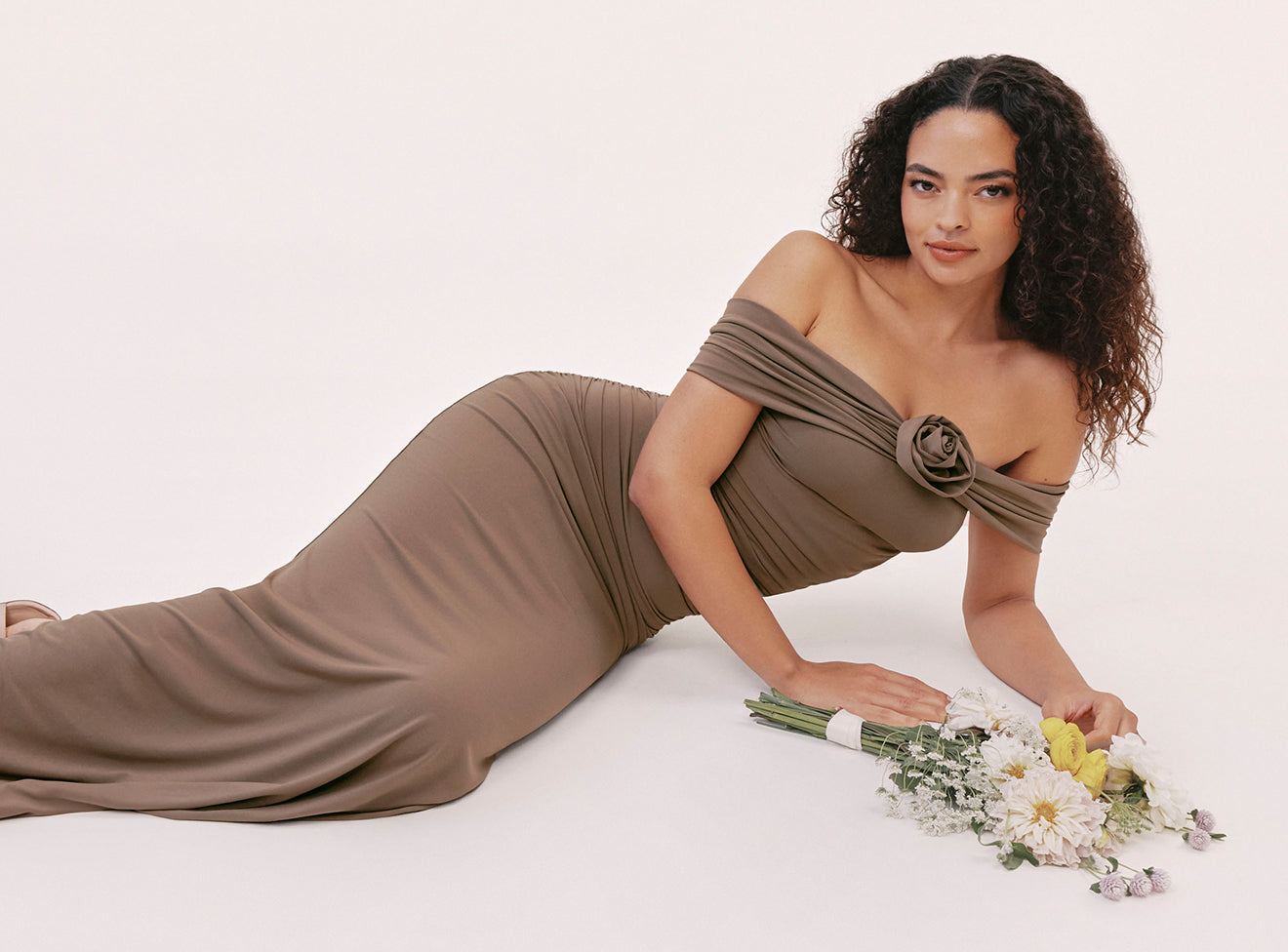 Surprise! A detachable rosette and sleeve placement make this a secret convertible dress.