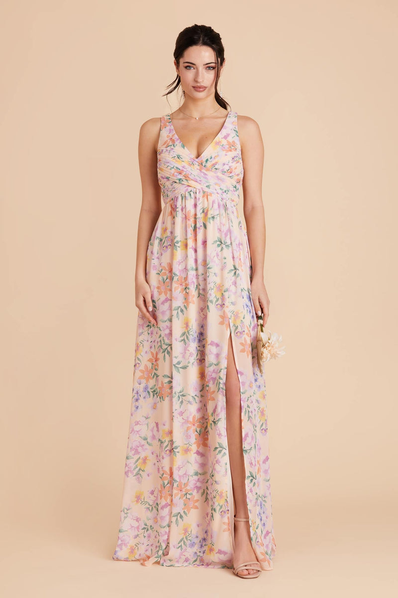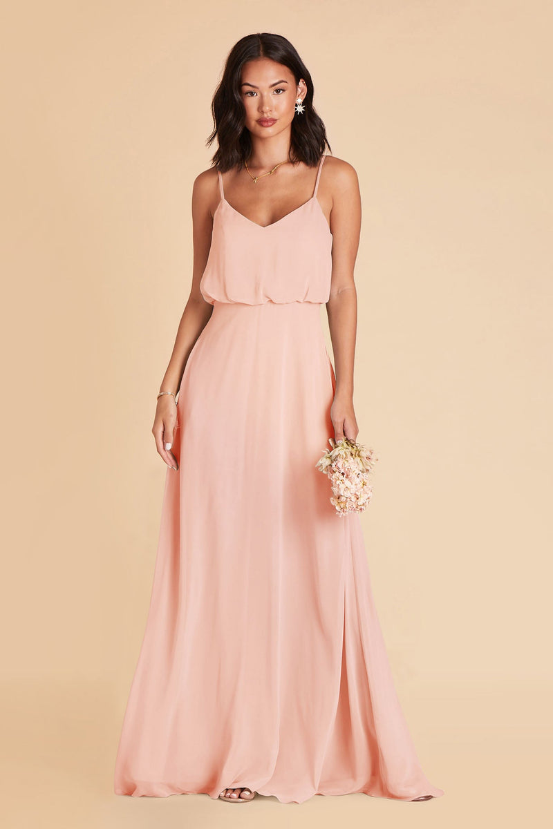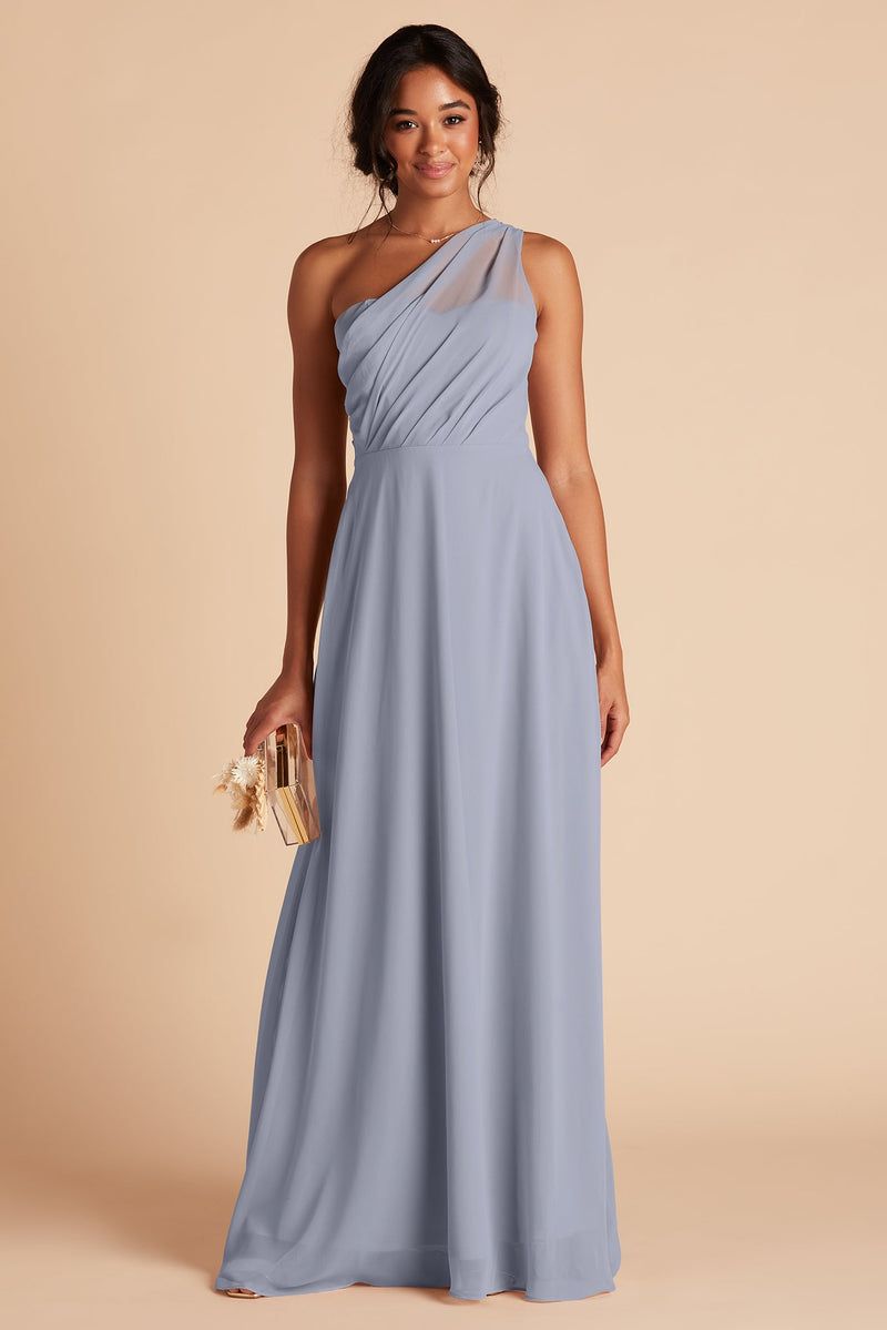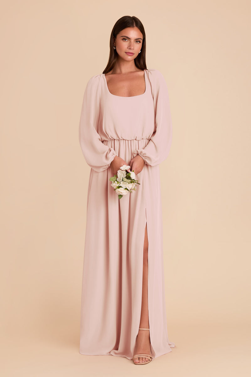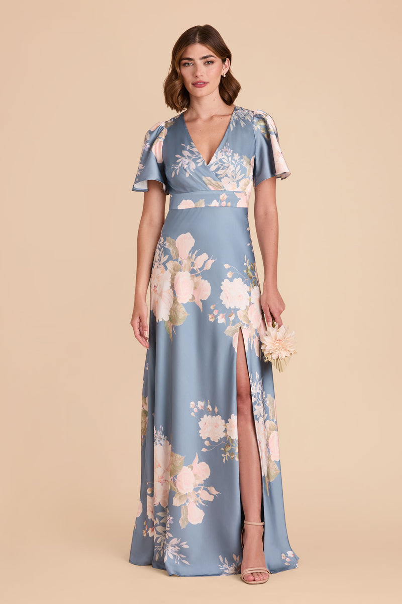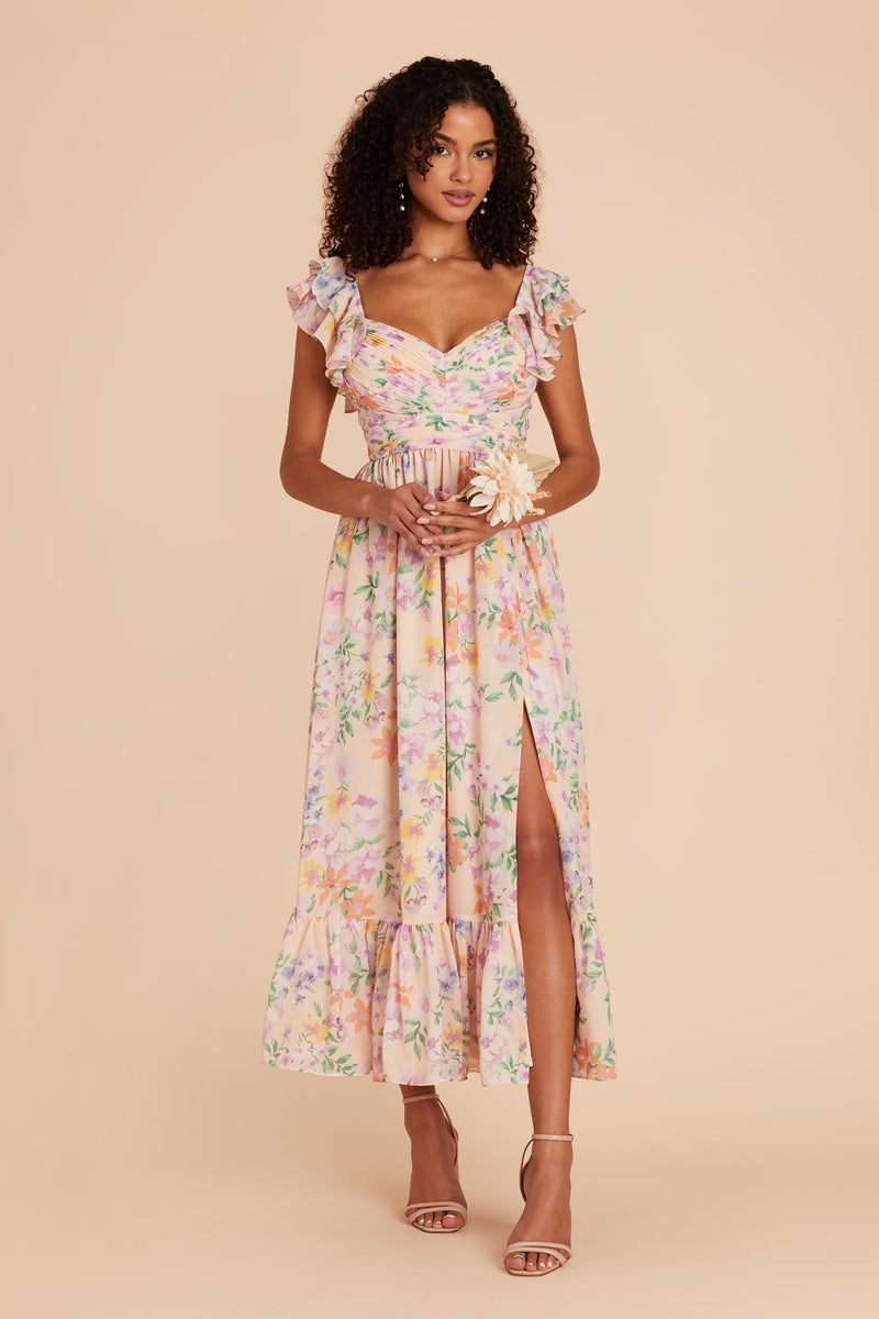 Your bridesmaids will be blooming in this soft, floral palette in airy chiffon and supple matte satin.