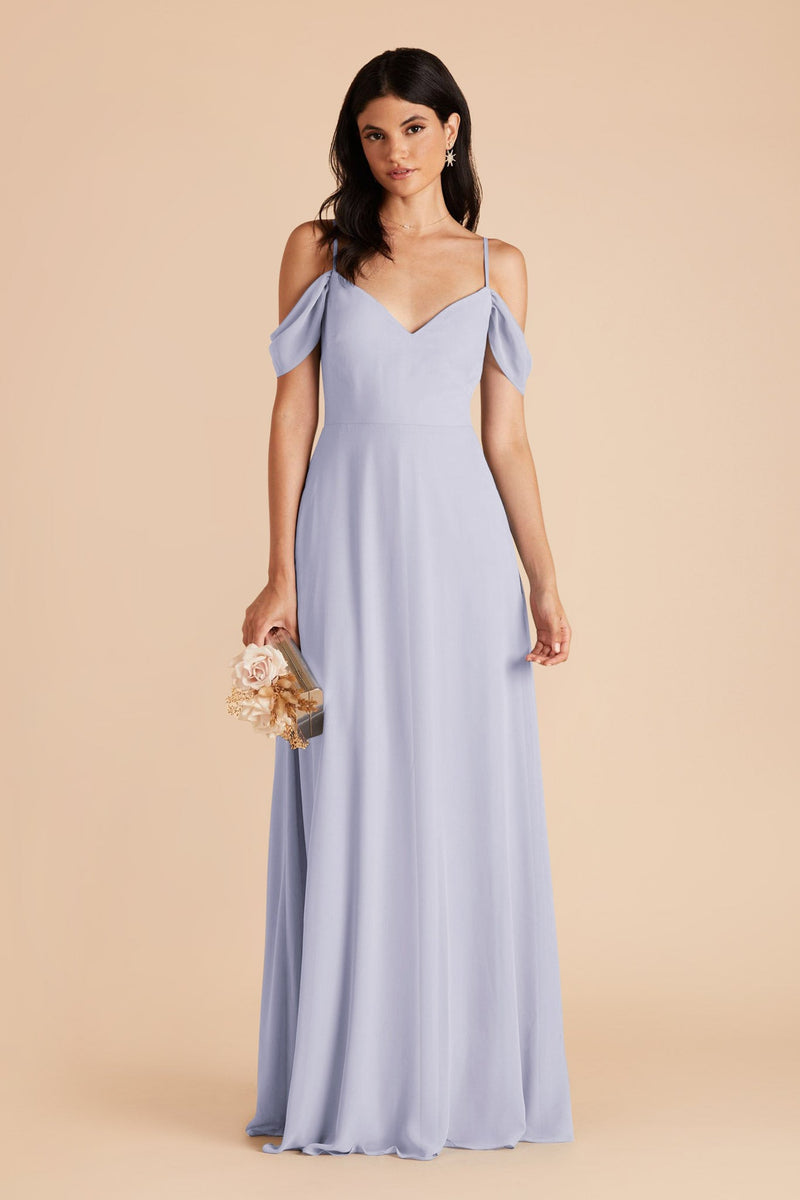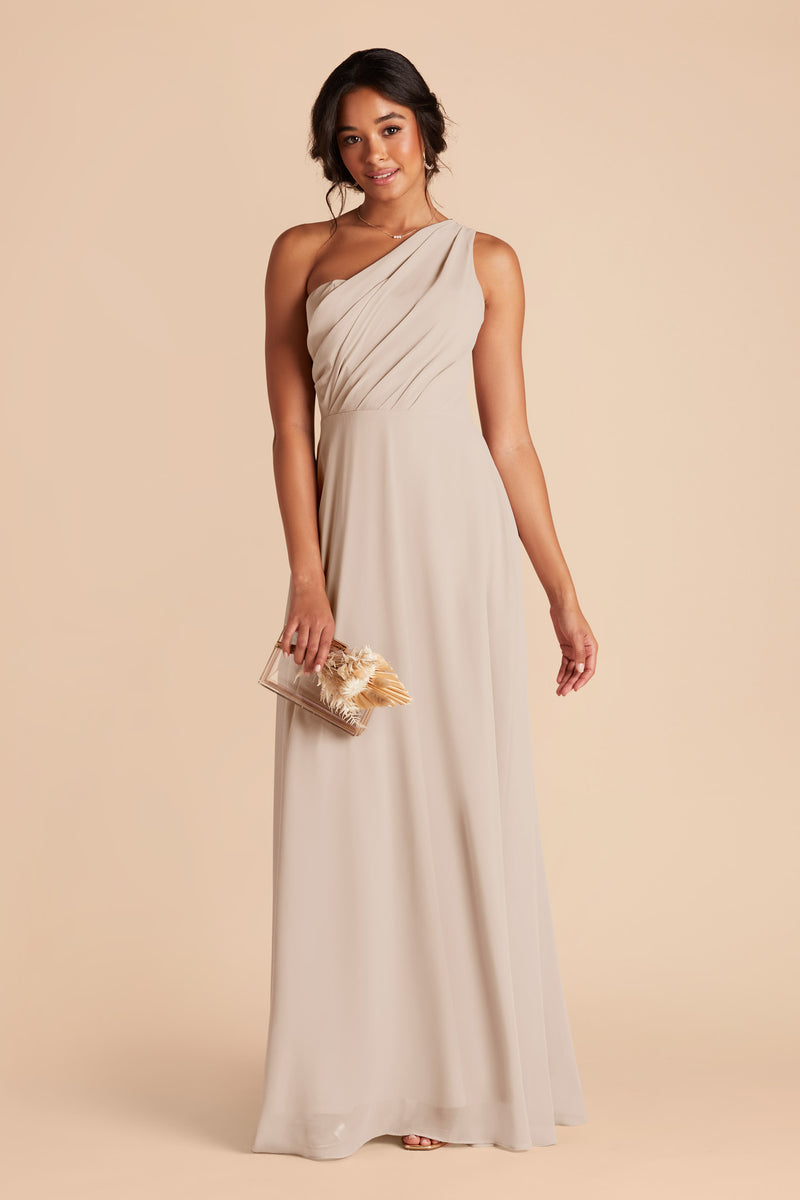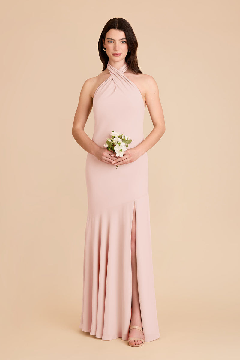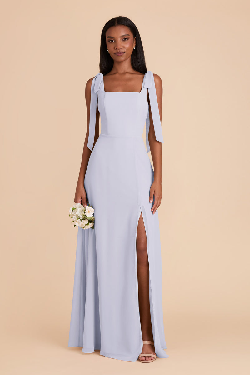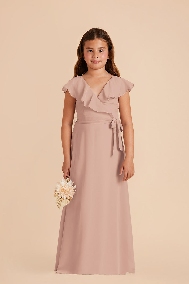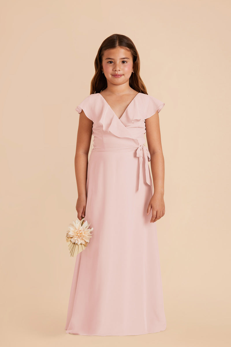 Your bridesmaids will be blooming in this soft, floral palette in airy chiffon and supple matte satin.