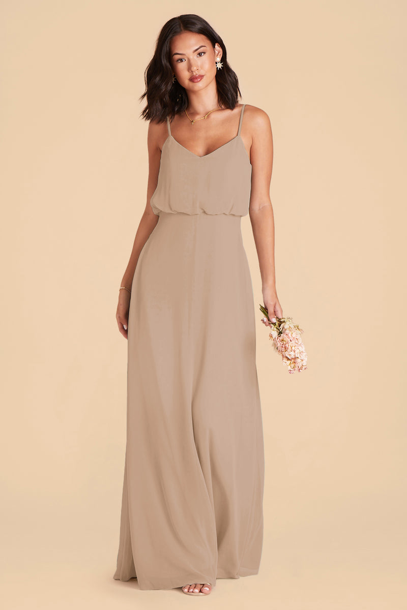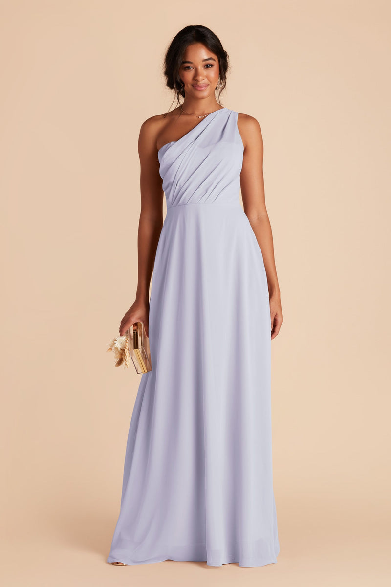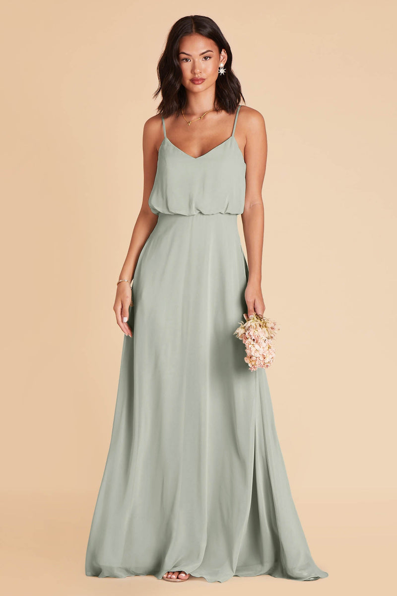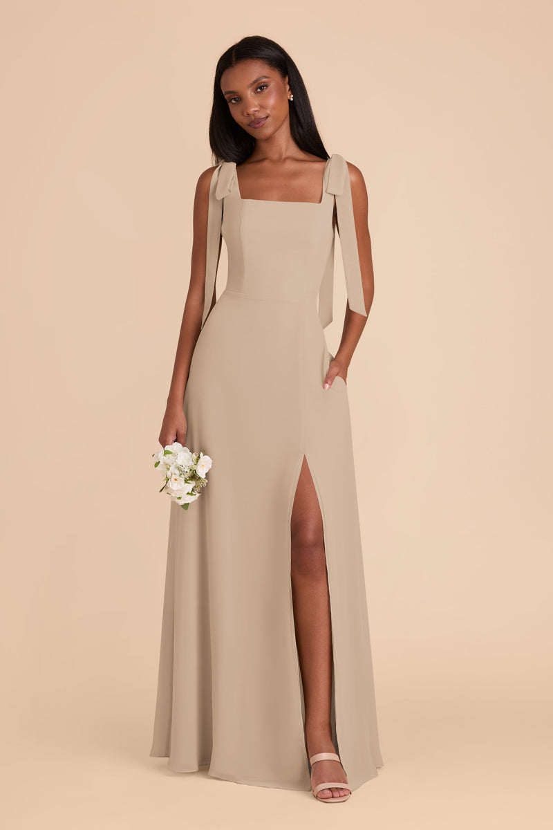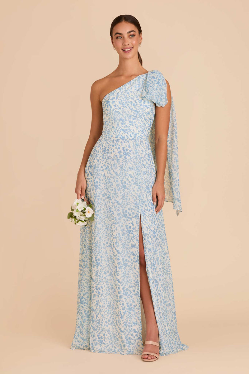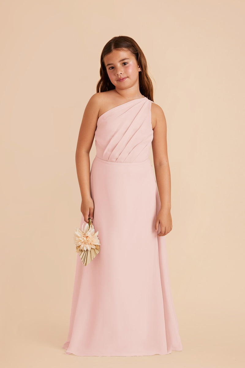 Your bridesmaids will be blooming in this soft, floral palette in airy chiffon and supple matte satin.