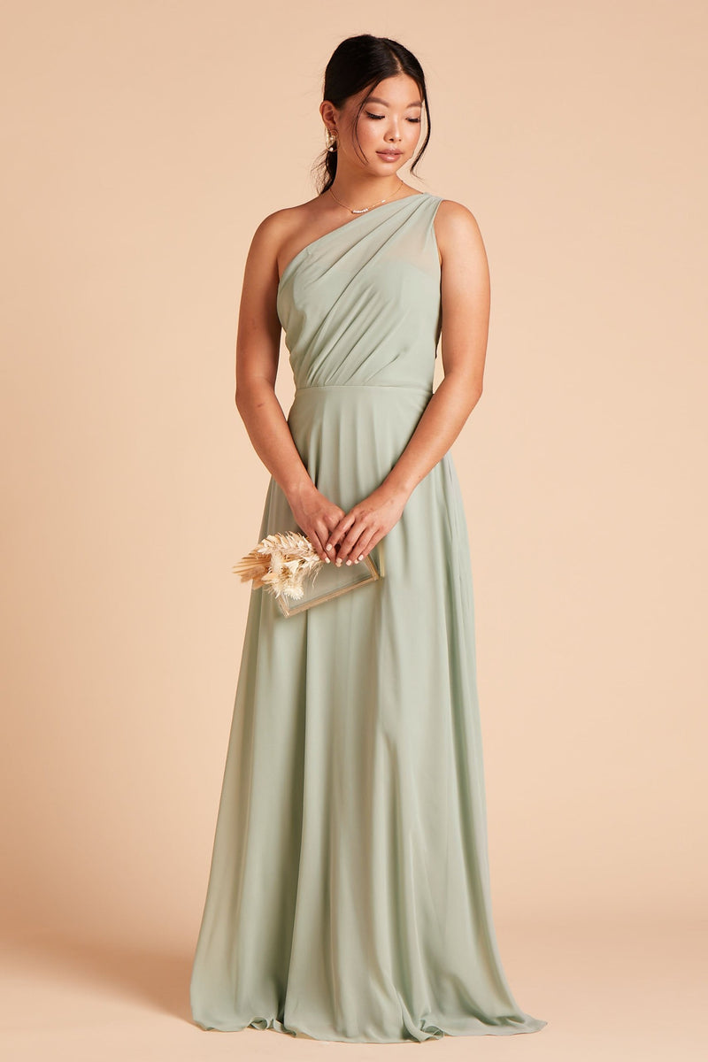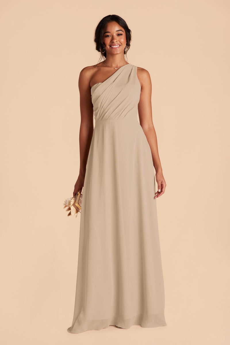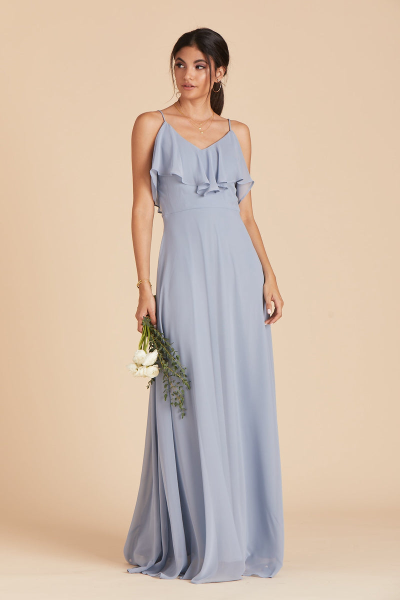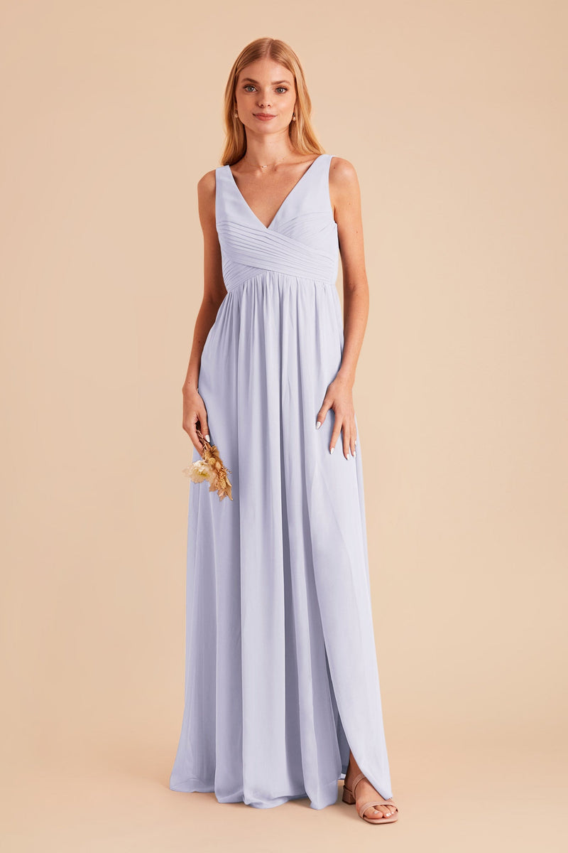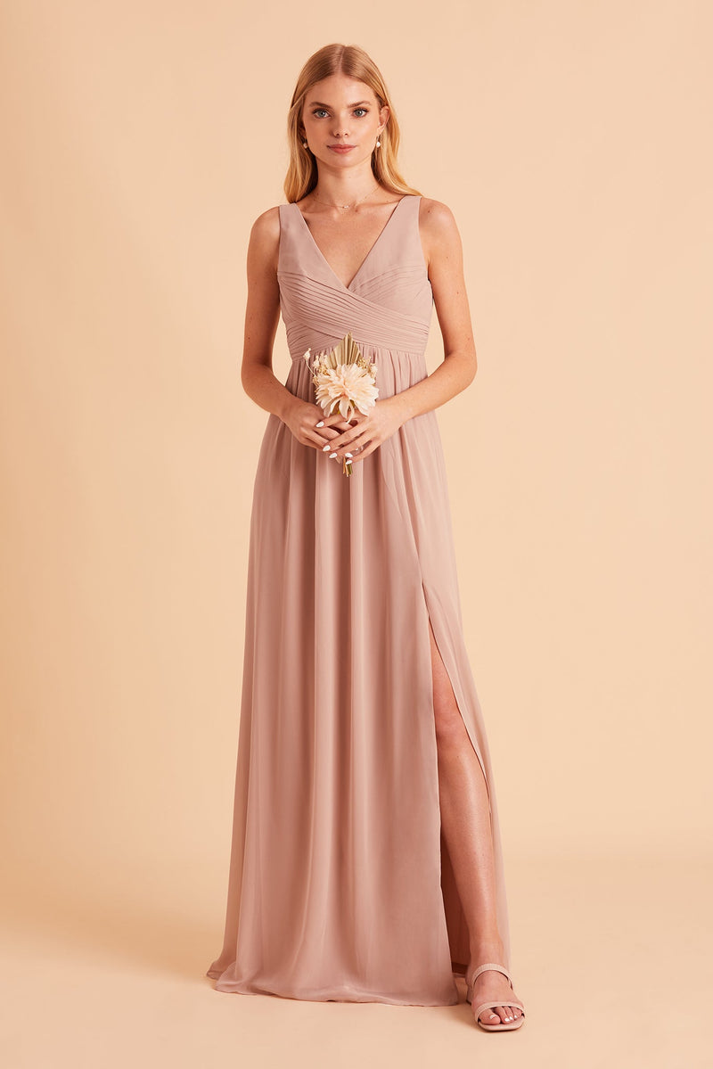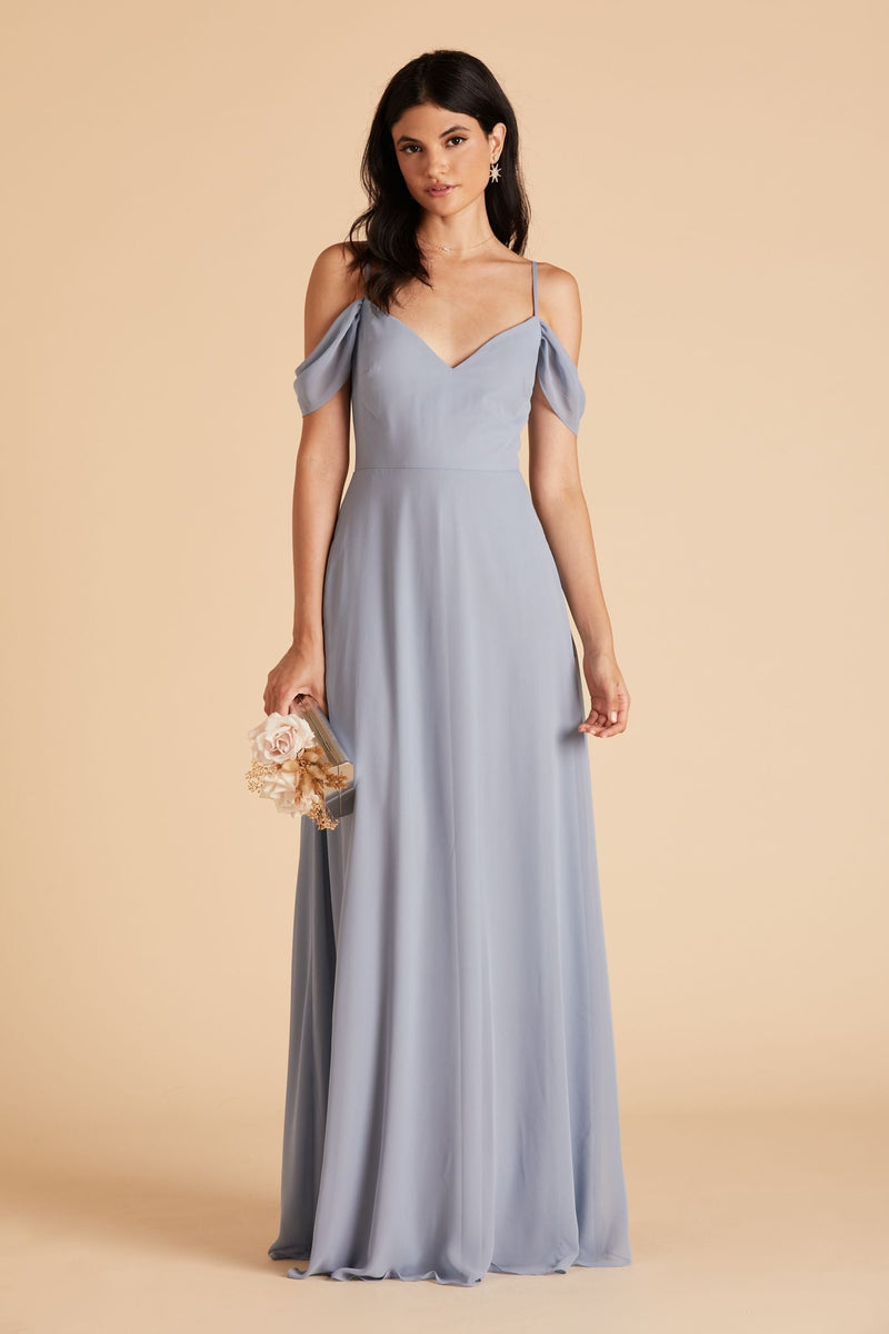 Your bridesmaids will be blooming in this soft, floral palette in airy chiffon and supple matte satin.
