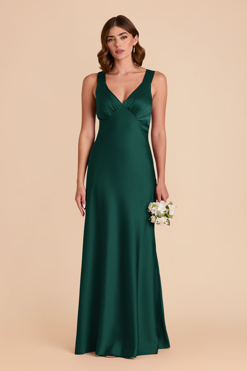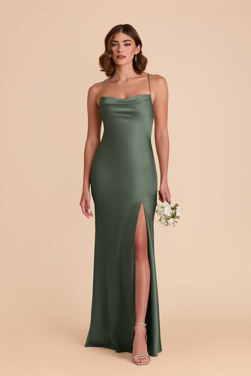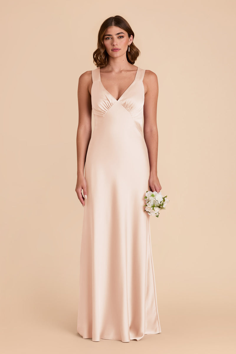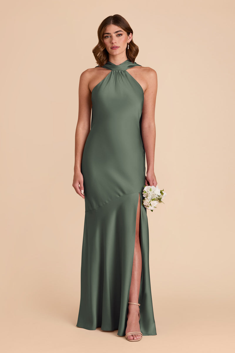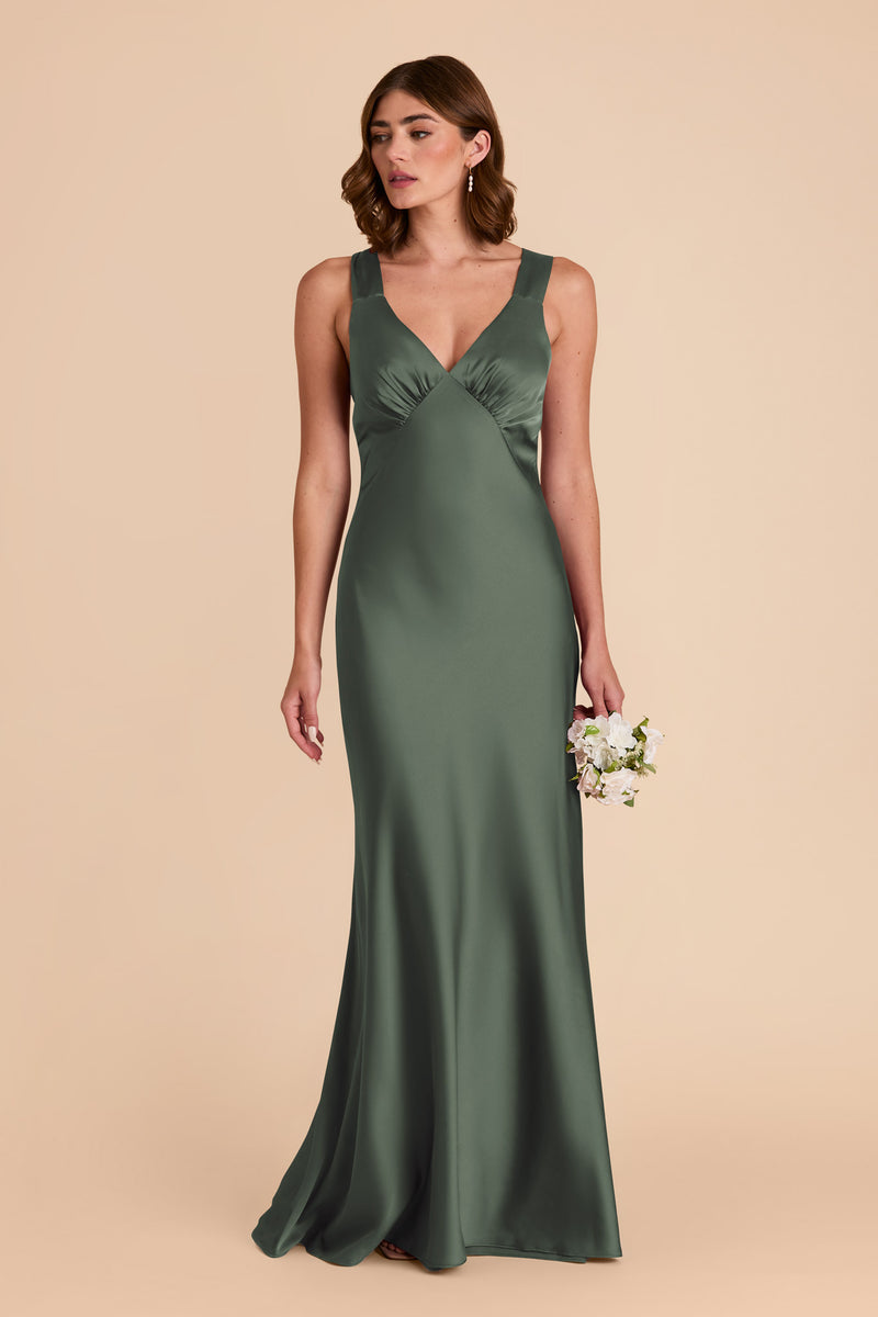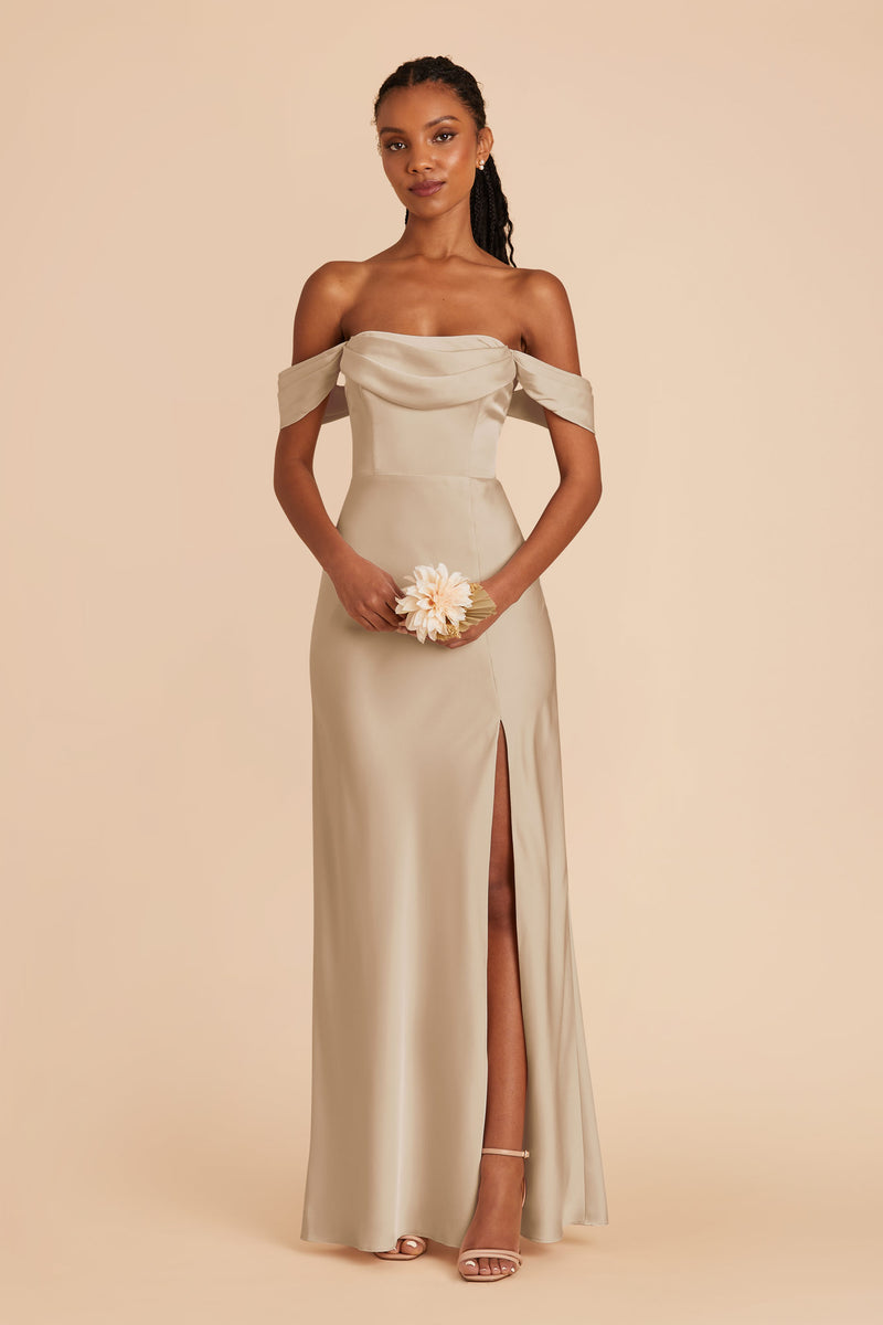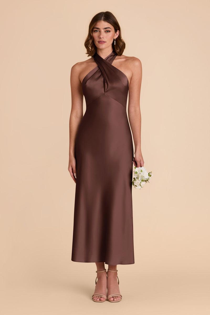 Stunning gowns in earthy shades take on a sophisticated look in satin.